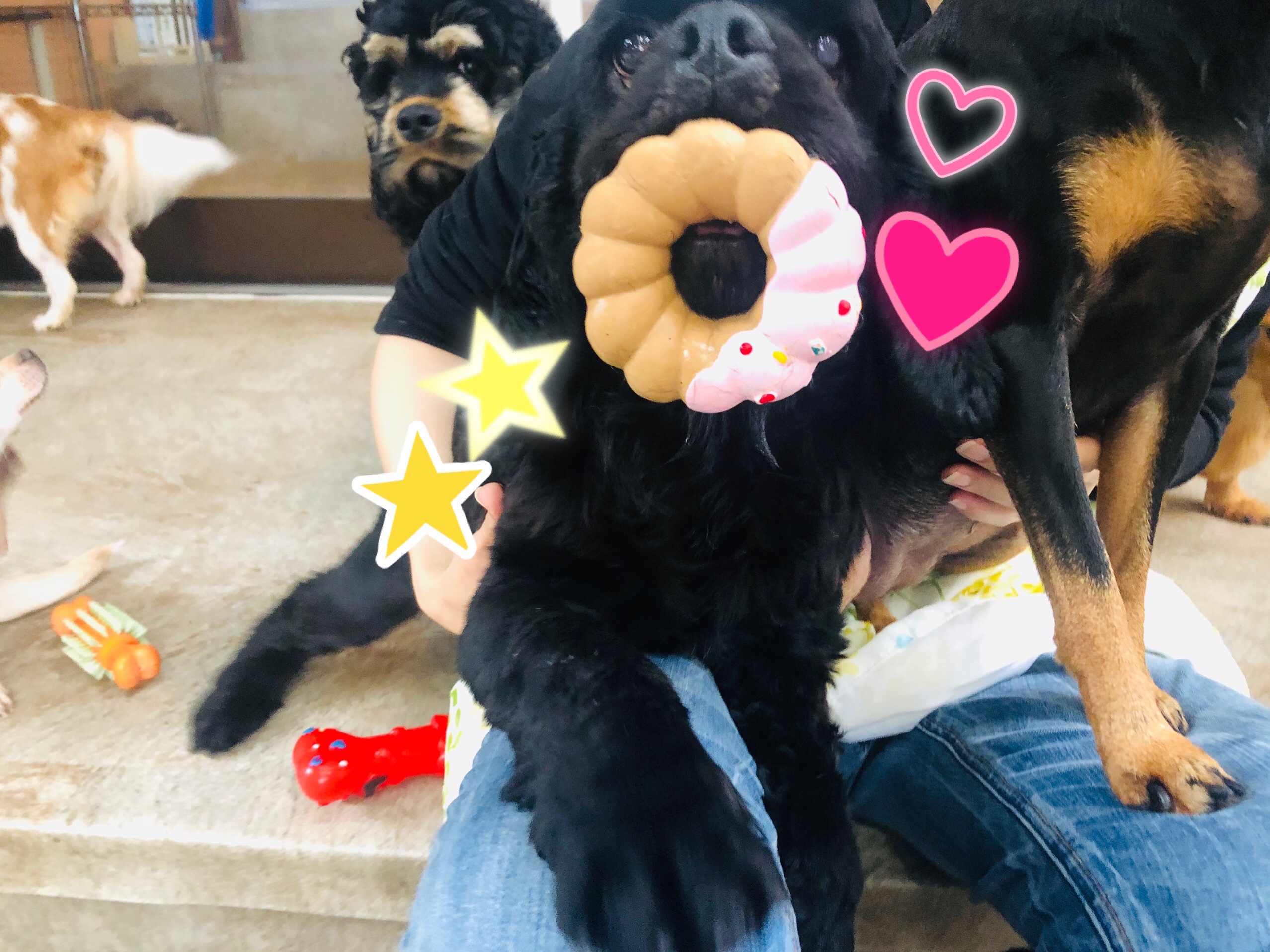 さて、平成最後のドッグランでは、スタッフさんのお膝の上でピンちゃん🐶とおもちゃ大好きモアナちゃん🐶しっかりとドーナツのおもちゃを口にくわえてカメラ目線📷✨